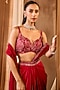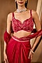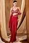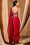 Featuring a red pre-draped saree in chanderi silk base. It is paired with a blouse having beads, resham and sequins embroidery. Accentuate it with statement earrings and heels for cocktail parties or sangeet ceremony.