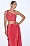 Featuring a red pre-draped saree in silk crepe base with hand embroidery. It is paired with a blouse. Style it with dangler earrings and heels for a complete look.