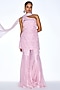 Featuring a rose pink one-shoulder kurta in silk crepe, organza and net base with hand embroidery. It is paired with gharara pants and a dupatta. Style it with dangler earrings and heels for a complete look.