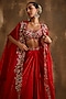 Rust Red Silk Crepe & Organza Hand Embroidered Cape Set