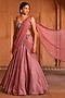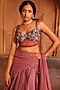 Featuring a wine draped lehenga saree in silk organza base with sequins, beads, glass beads and crystals hand embroidery, including a draped dupatta. It is paired with a modern-cut blouse. Accentuate it with statement jewellery and heels for a wedding, sangeet or engagement ceremony.
