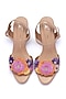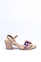 Beige Faux Leather Floral Embroidered Block Heels