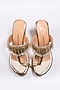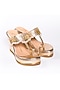 Featuring a pair of gold kolhapuri wedges in a faux leather base with embroidery. It has a faux leather underlining and 4-inch heels.
