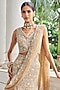 Featuring a beige lehenga in organza base with sequins, pearl and mirror embroidery. It is paired with a blouse and a dupatta. Accentuate it with statement earrings and elegant heels for a stylish ensemble, ideal for weddings or sangeet ceremonies.