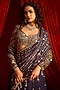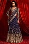 Featuring a blue lehenga saree in modal satin and net base with embroidery. It is paired with an embroidered blouse. Accentuate it with pearl or zircon jewellery, embellished heels and a potli bag for a traditional look, perfect wear for a wedding, engagement or sangeet ceremony.