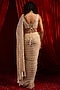 Featuring a bright golden pre-draped saree in georgette base with embellishment. It is paired with an embellished blouse. Accentuate it with silver jewellery and heels for a festive celebrations or wedding functions.