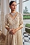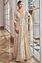 Featuring a golden kurta in organza, net, chanderi and georgette base with sequins, mirror and pearl embroidery. It is paired with a lehenga and an embellished dupatta. Accentuate it with statement earrings and elegant heels for a stylish ensemble, ideal for weddings or sangeet ceremonies.
