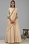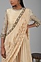 Featuring a peach gown in georgette, crepe and silk base with a draped pattern. This contains only one piece.