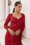 Featuring a red saree in georgette base with moti and sequin embroidery. It is paired with an embroidered V-neck padded blouse. Accentuate it with a heavy gold choker set and stilettos for a wedding ceremony, engagement, or karva chauth or festive occasion.