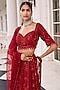 Featuring a red lehenga in organza and net base with sequins, moti and nalki embroidery. It is paired with a floral embroidered padded blouse and a dupatta. Accentuate it with a diamond necklace set and nude heels for a wedding reception or bridal wear.
