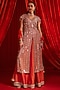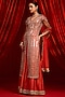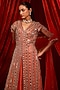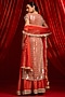 Featuring a rust lehenga in chanderi and net base with mirror and zari embroidery. It is paired with an embroidered kurta style blouse and a dupatta. Accentuate it with statement jewellery and heels for a sangeet or engagement ceremony.