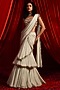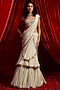 Featuring a sage green draped saree in chiffon base with mirror, beads and sequins work. It is paired with an embroidered padded blouse. Accentuate it with statement jewellery and heels for wedding or cocktail ceremonies.