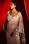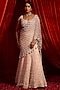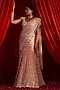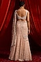 Featuring a salmon pink mermaid lehenga in georgette base with an attached dupatta, floral motifs, silver sequins, pearl and mirror work. It is paired with an embroidered blouse. Accentuate it with statement jewellery and heels for a sangeet or engagement ceremony.