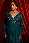 Featuring a teal and turquoise anarkali in chiffon and organza base with mirror and bead embroidery. It is paired with a dupatta. Accentuate with statement jewellery and heels for festive, pooja or sangeet ceremonies.