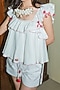 Featuring a white ruffled top in handwoven cotton base with hand embroidery, handmade tassels, and soft mulmul lining. It is dyed in azzo free dye. This contains only one piece.