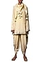 Featuring an antique jade colored kurta in crepe base with kundan, dabka and sequins embroidery. It is paired with matching dhoti pants and scarf.