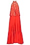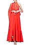 Featuring a carrot red halter neck anarkali in crepe base with embroidered yoke. It is paired with matching churidar and embroidered dupatta in net base.
