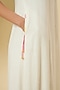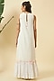 Featuring an ivory flowy maxi dress in cotton base with handcrafted accents. Style it with pearl studs, a cane tote bag and strappy heels for an effortless day-to-evening styling with modern appeal.