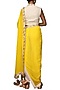 Featuring an ivory and yellow dhoti saree in khadi base with zardosi embroidery. It is paired with a blouse. Accentuate it with statement jewellery and heels for a haldi or sangeet ceremony.