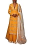 Featuring a lily ochre kurta in crepe base with kundan and sequins embroidery. It is paired with a matching skirt in soft net base and dupatta.