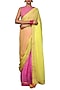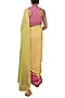 Featuring a lime green and pink saree in chiffon base with leheriya pleats and hand printed butta border. It is paired with a hand embroidery blouse. Accentuate it with statement jewellery and heels for a pooja ceremony or festive?occasion.