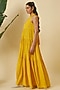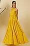 Featuring a marigold yellow tiered maxi dress in seersucker base with a gathered halter neckline. Accentuate it with woven sandals, oversized sunglasses and a straw tote for a stylish ensemble, ideal for beach vacations, brunch outing or summer getaways.