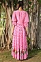 Featuring a mithai pink and white dress in crepe and leheriya base with floral applique hand embroidery and handmade tassels.