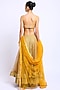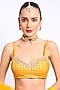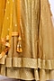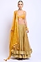 Featuring an ochre lehenga in organza and cotton silk base with chotu sanga gold print. It is paired with a contrasting blouse in cotton silk base with hand embroidery at the neckline and a dupatta in mukaish net base with embroidery.