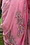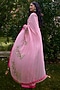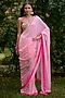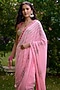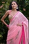 Featuring a pink saree in georgette base with print and embroidery. It is paired with a raw silk embroidered blouse. Accentuate it with statement jewellery and heels for a festive occasion, wedding or sangeet ceremony.