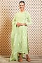 Featuring a pista green angrakha kurta in viscose crepe base with highlighted motifs and mughal buta gold foil print. It is paired with matching straight pants and a hand-woven kota doria dupatta having a mughal buta border with lace details.
