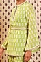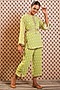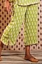 Featuring a pista green kurta in viscose georgette base with antique gold coin and thread hand-embroidered neckline, sleeve details, and mughal buta print. It is paired with matching straight pants and a hand-embroidered belt.