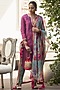 Featuring a purple kurta in crepe and cambric base with digital print. It is paired with matching churidar pants and an organza dupatta.