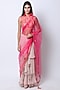 Featuring a rani pink and nude pre-stitched saree set in net, crepe and georgette base with aari embroidery and lotus print. It is paired with a chevron hand embroidered blouse. Accentuate it with statement jewellery and heels for a wedding, engagement or sangeet ceremony.
