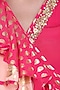 Featuring a rani pink wrap tunic in crepe base with jasmine bud foil print and double layer frills. It is paired with matching churidar.