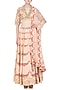 Featuring a salmon pink lehenga in cotton base with scallop hand painting and embroidery and floral borders. It is paired with matching blouse and net embroidered dupatta.