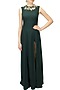 Featuring a green scoop kurta in silk with metal embellished neckline and long slit in front. It comes along with gold full embroidered nude churidaar in net. FIT: Fitted at bodice.