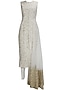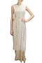 Featuring an ivory half cape kurta in linen base with gold embroidery in floral pattern all over the front and back along with ivory net overlayered flower work cape on one side. It has a zipper closure detailing at centre back along with mid slit. It comes along with white net churidaar pants.