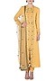 Featuring a mango front open kurta in georgette base with hand embroidery. It is paired with matching churidar pants and embroidered dupatta.