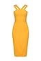 Featuring a mustard basic V neck shift dress with metal chip detail around straps.