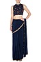 Navy Blue Pre-Stitched Saree with Floral Embroidered Blouse