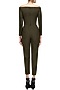 Featuring an olive fitted jumpsuit in imported blend with gold metal chip detailing on the pants.