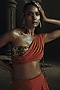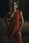 Featuring a rust jumpsuit saree in volvo base with metallic bead embroidery. Accentuate it with statement earrings and embellished heels for a modern yet rooted ensemble, perfect for wedding or contemporary festive celebrations.