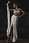 Featuring a white strappy blouse in crepe base with beads embroidery. It is paired with a draped skirt having an attached embroidered haathphool. Accentuate it with statement earrings and embellished heels for a modern yet rooted ensemble, perfect for sangeet nights or contemporary festive celebrations.