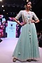 This set features a blue open jacket with cutwork all over highlighted with gota patti, peark and sequins embroidery. It is paired with knit inner and wide legged lace insert pants.