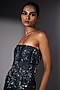 Featuring a blue tube mini dress in denim base with starburst embroidery. Accentuate it with statement earrings and sleek heels for a bold, modern look, perfect for cocktail evenings, after-parties, fashion events, or upscale night-outs.