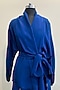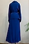 Featuring a blue wrap jacket in satin crepe base. It is paired with a matching skirt having a slit.