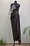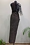 Featuring a brown asymmetric dress in gajji silk and organza base with chevron print. It has off white sheer drape and black bead hand embroidery.