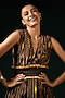 Featuring a brown pleated mini dress in pure georgette base with geometric print. It is paired with a belt. Accentuate it with statement earrings and heels for a cocktail or an after party.