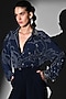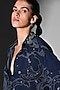 Featuring an indigo blue shirt in double suiting base with swirl print and glass beads embroidery. Style it with pants, statement earrings and heels for a cocktail or an after party.