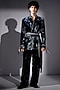 Featuring a blue jacket in silk velvet base with galaxy print. It is paired with pants. Style it up with polished black loafers and a silver watch to enhance its luxurious, statement-making appeal, ideal for evening parties, high-fashion events or glamorous celebrations.